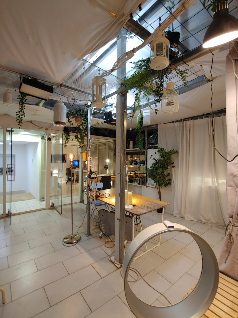 천장 위로는 어닝이 설치되어있어서 촬영시 빛조절이 가능해요!!