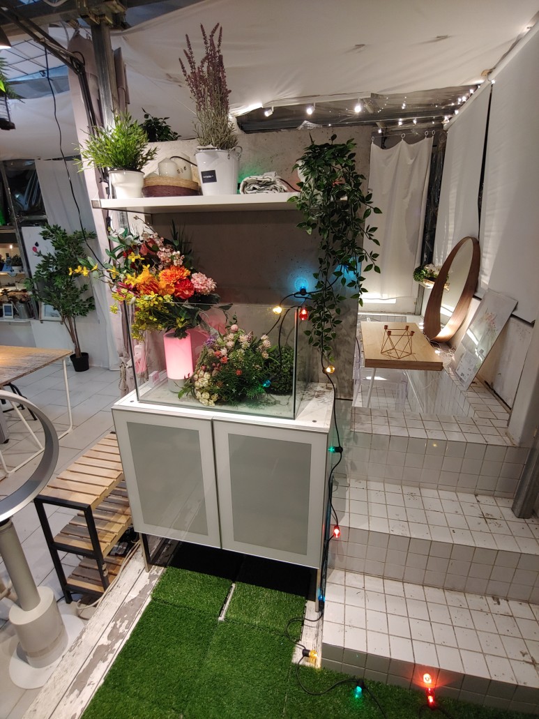슈팅프로의 렌탈 가능한 소품인 조화와 아트소품들로 가득하게