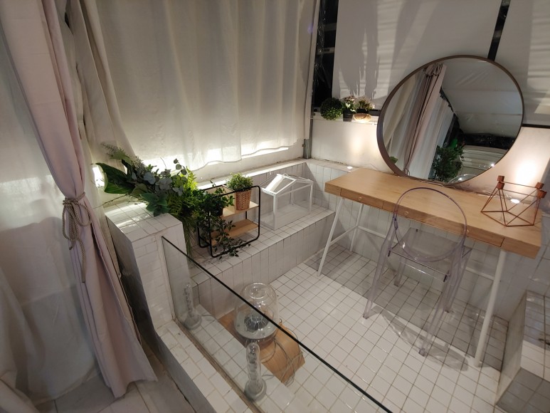 자쿠지 안에 화장대를 설치해서 하늘하늘한 패브릭과 꽃과 풀들, 전구빛까지 어우려져 신비스러운 느낌이 나는 공간으로 연출해 보았답니다~~